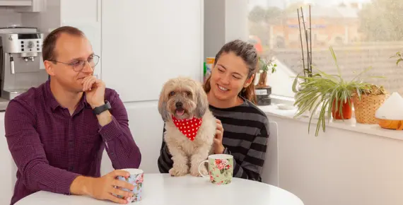 Meet young couple, Marius and Bris - and their dog, Leia - who live in Gregory House, Plaistow.